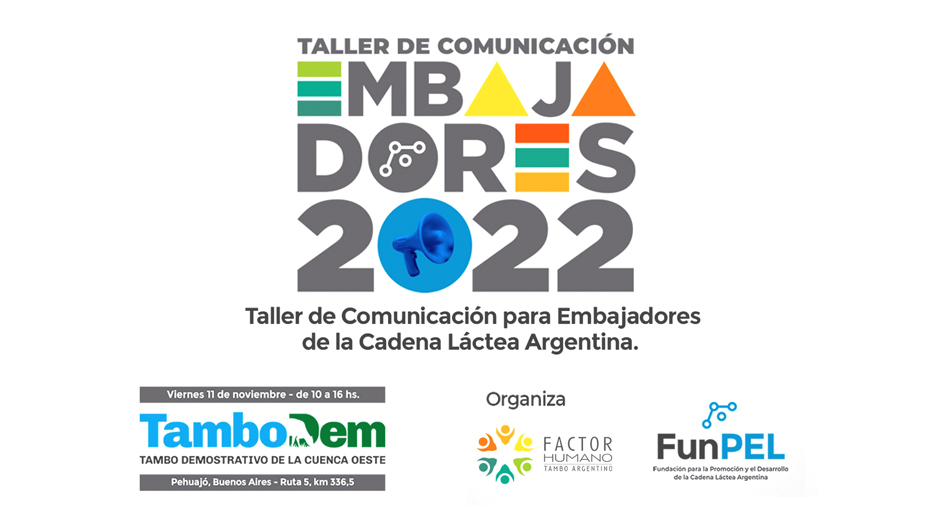 - El viernes 11 de noviembre se realizará un taller organizado por FunPEL y Factor Humano en Tambos con la finalidad de capacitar a los potenciales Embajadores de la Cadena Láctea Argentina